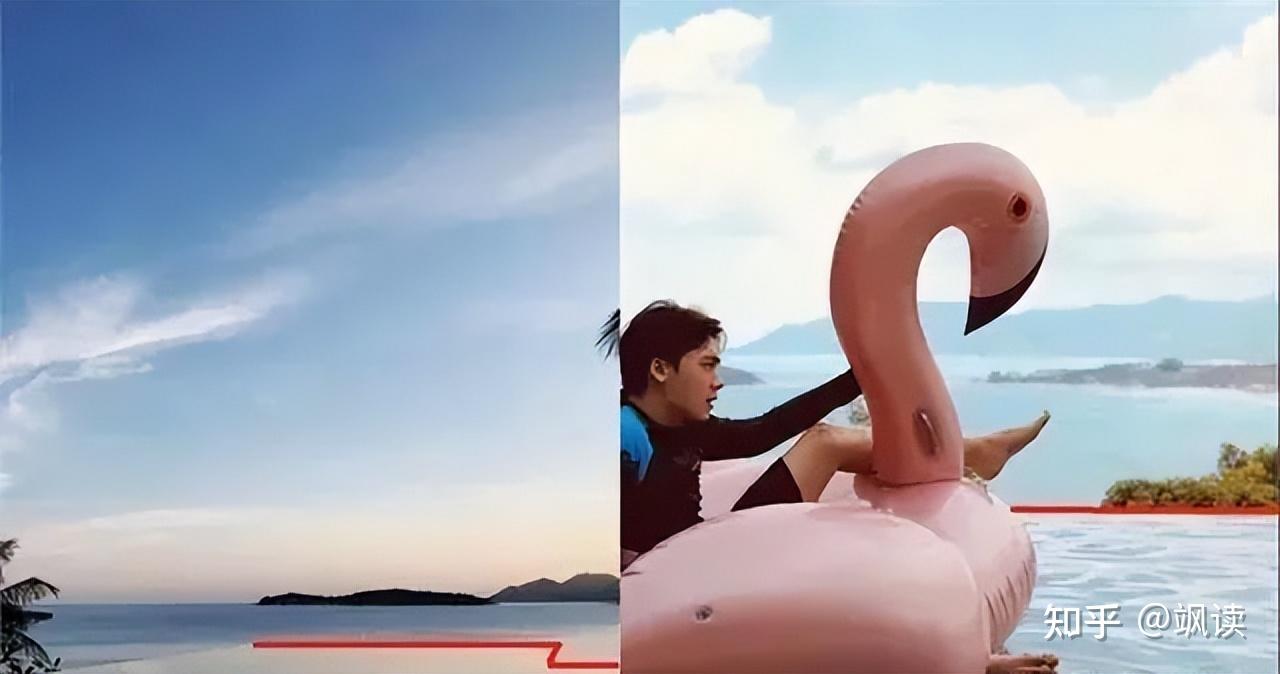 跨年时,他发了一个朋友圈,风景和向外凸出的泳池是不是很眼熟?
