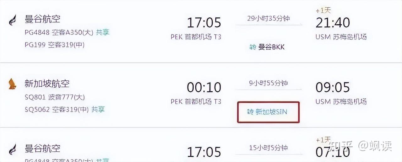 (冷知识:北京没有直飞苏梅岛的航班,都需要转机,常见的转机地点之一就是新加坡。)