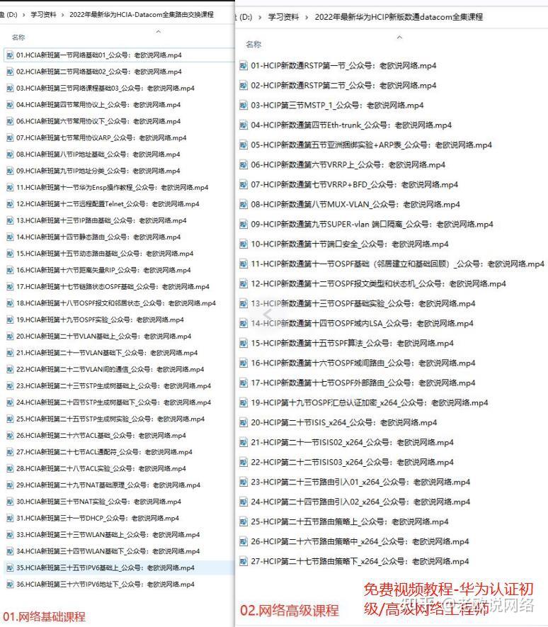 资料包几乎覆盖了主流厂商(思科、华为、新华三)认证的初级/高级网络工程师培训教材、教学视频、1:1实验模拟器等等,非常适合初学者入门进阶