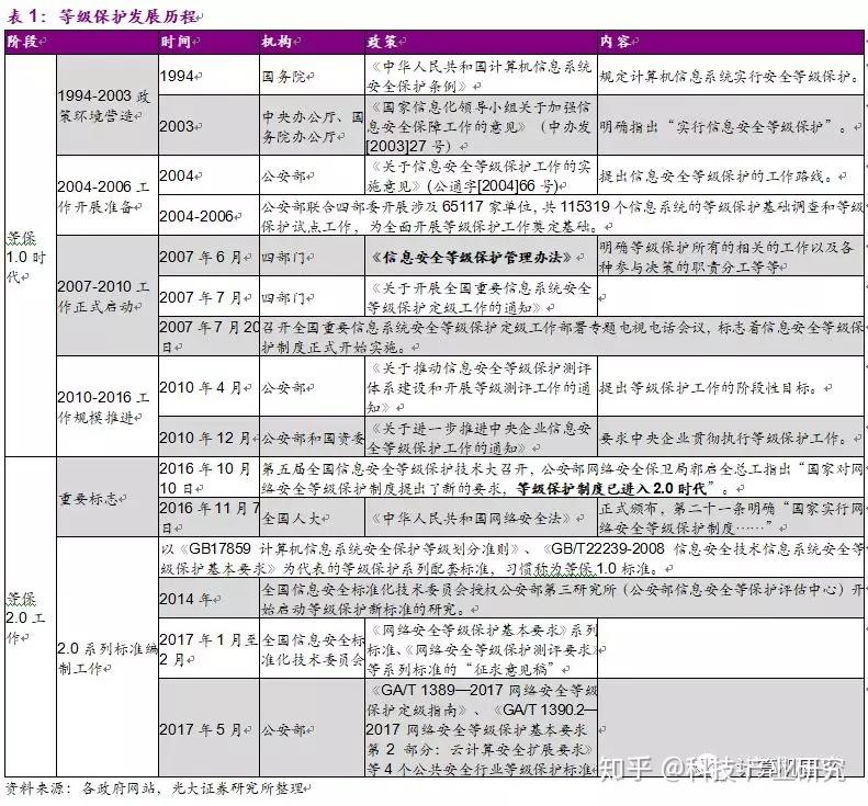 早在1994年,国务院颁布《中华人民共和国计算机信息系统安全保护条例》,规定计算机信息系统实行安全等级保护。而后在2003年,中办、国办转发的《国家信息化领导小组关于加强信息安全保障工作的意见》中指出,“要重点保护基础信息网络和关系国家安全、经济命脉、社会稳定等方面的重要信息系统”。