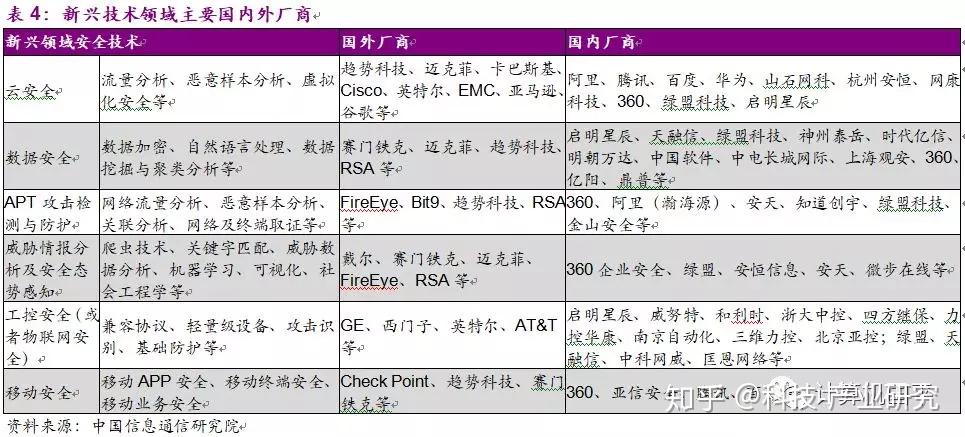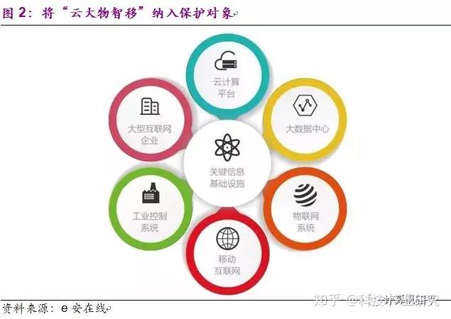 等保2.0范围更广、力度更大且对新兴领域安全提出要求,这有望带动信息安全整体市场需求增加,其中受益最大的是威胁情报、态势感知、SOC等主动防御领域、云安全、数据安全和工控安全等新兴安全领域及安全服务领域和个人信息安全防护。目前新兴安全领域整体市场规模较小,未来空间巨大。