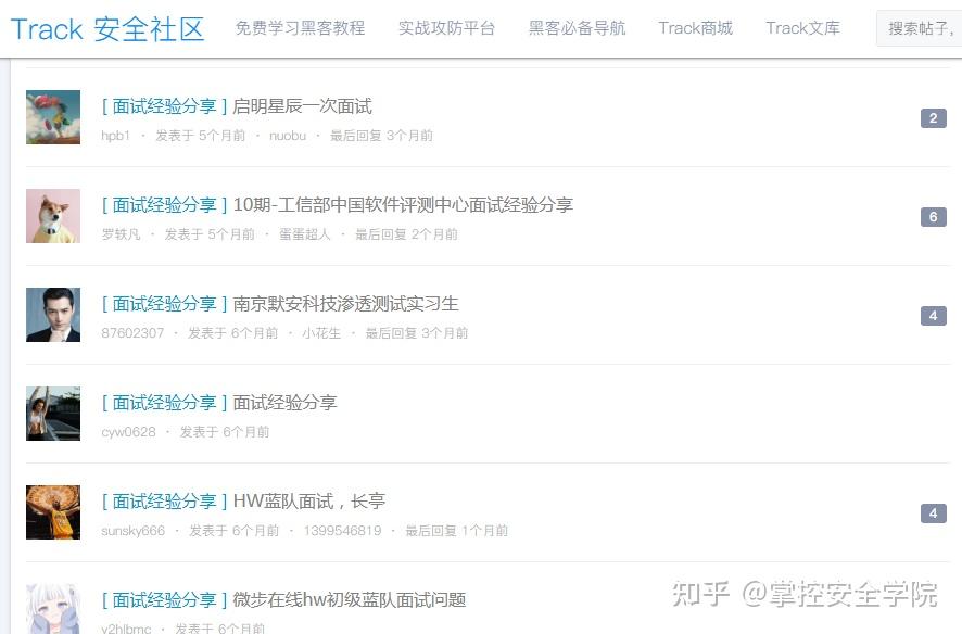 或者我们学院的社区中(Track安全社区)也会有各大厂的招聘专版,并且还有我们学院学员们的面试经验分享