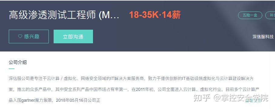 举个例子:比如我想去深信服上班,然后去搜集深信服的技术招聘,发现渗透测试工程师这个岗位还不错,月薪18K起步