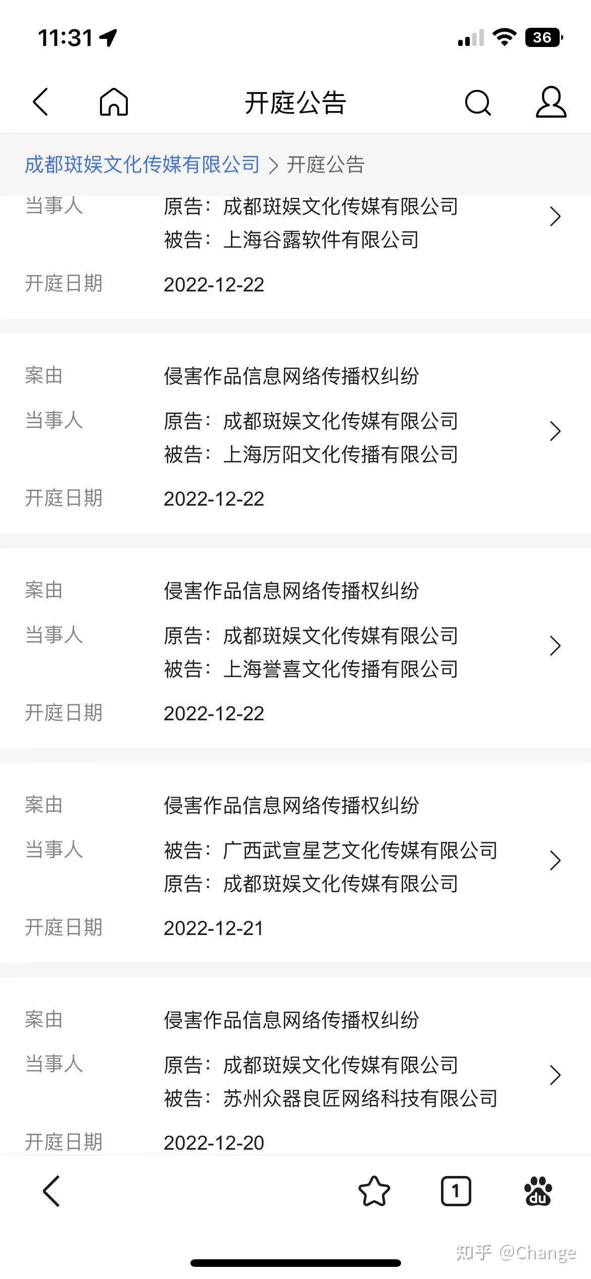 通过第三方平台查询得到的数据,成都斑娱每日要起诉3-4起官司,近一年时间已经超过1000起案件,而查看其案件进展情况,则是十诉九撤,鲜有宣判案例。