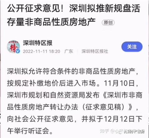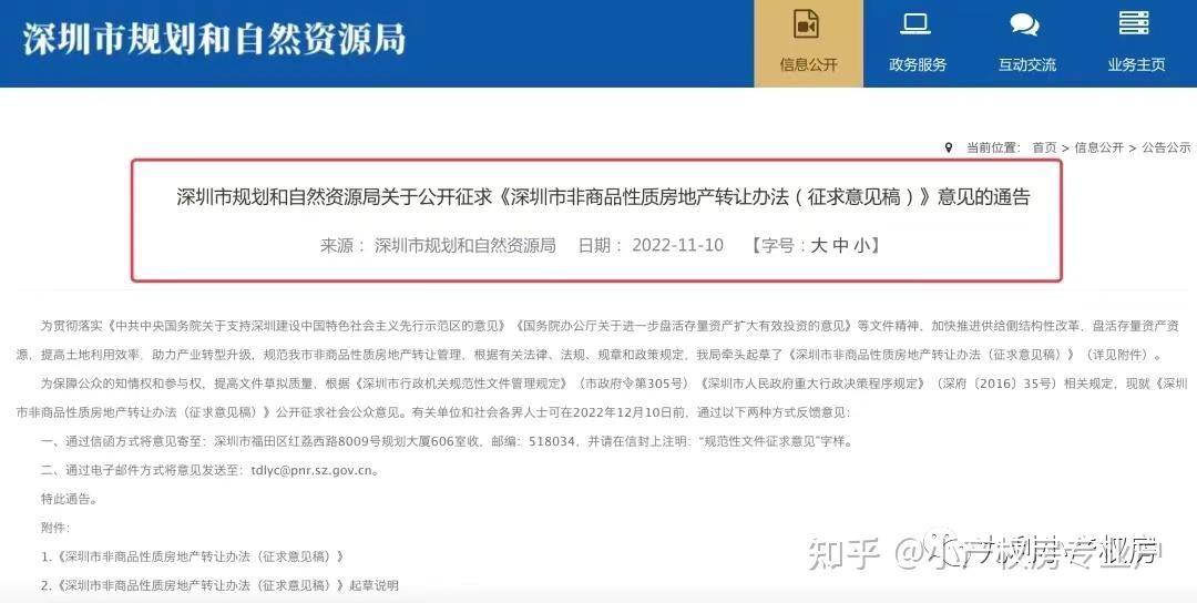 接下来听小婷给你细细解读文件,11月10日,深圳市规划和自然资源局发布了《深圳市非商品性质房地产转让办法(征求意见稿)》向社会公开征求意见,并拟于12月12日下午举行听证会。