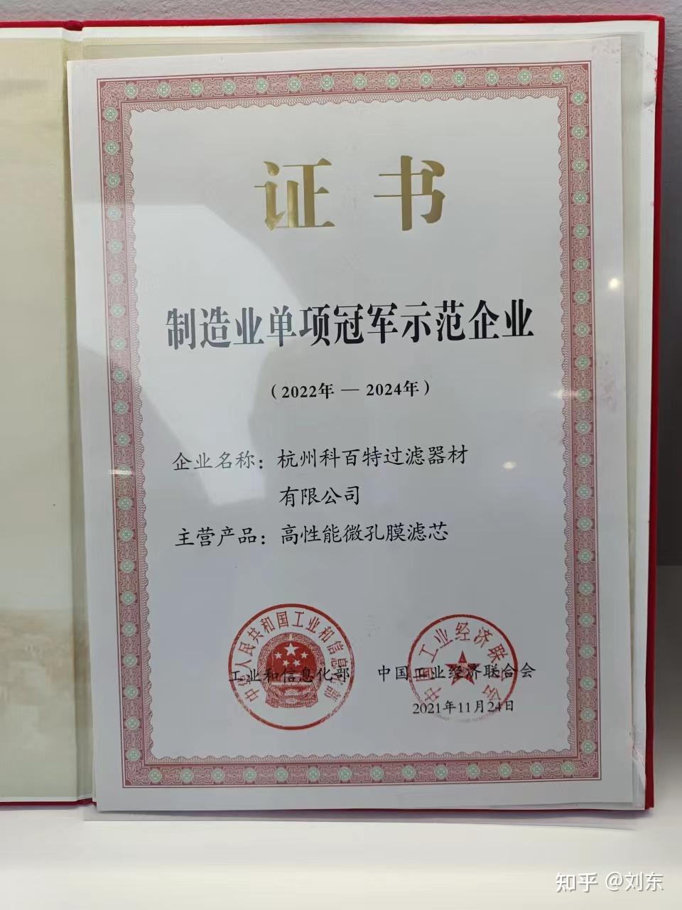 据了解,到目前,科百特已经开发了十多种独特的核心材料,拥有400多项专利技术,是国内膜过滤领域唯一一家拥有全产业链制造能力的企业(全球仅5家)。2021年11月获得工信部“制造业单项冠军示范企业”荣誉称号。