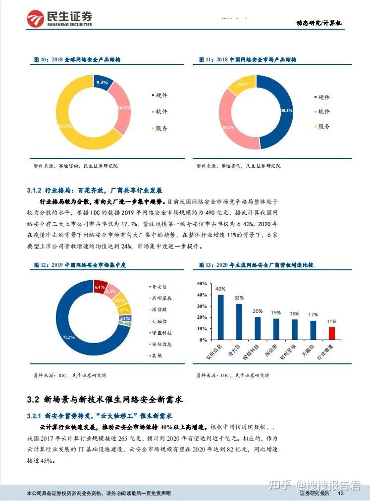 (601360)网络安全王者利刃出鞘,三六零政企安全业务版图强势铺开.pdf (601360)网络安全霸主展露锋芒,三六零打造新基建安全基石.pdf 2019年我国互联网网络安全态势综述.pdf 2021年中国网络安全集成服务基础能力探析.pdf 360-“新基建”时代的网络安全与APT攻击.pdf IBM:关注公用事业,网络安全缺陷.pdf 三六零(601360)网络安全为核,发力政企扩展新边界.pdf 中国信通院&腾讯安全:2019健康医疗行业网络安全观测报告.pdf 中国信通院中国东盟网络安全产业发展现状研究报告(2019年).pdf 中国网络安全技术与企业发展研究报告(2020年).pdf 中国网络安全系列报告:2021年奇安信与启明星辰商业模式竞争力探析.pdf 云安全专题报告:网络安全的未来在云端.pdf 互联网行业2019年数字信任洞察之中国报告:数字化转型要求网络安全团队主动识别风险.pdf 互联网行业:中国网络安全产业白皮书(2020年).pdf 互联网行业:网络安全先进技术与应用发展系列报告-用户实体行为分析技术(UEBA)(2020年).pdf 互联网:重点国家网络安全立法洞察报告.pdf 信息行业周报:SolarWinds遭遇攻击,网络安全引发高度重视.pdf 先进网络安全能力验证评估系列报告:国内网络安全信息与事件管理类产品研究与测试报告(2021年).pdf 关注公用事业网络安全缺陷:从东拼西凑防线,转变为成竹在胸,安心无忧.pdf 国防军工行业:美国加强太空网络安全,空天竞赛加速在即-周报.pdf 奇安信(688561)剑指5G时代的网络安全领导者.pdf 奇安信(688561)网络安全新龙头,领跑行业新赛道.pdf 奇安信(688561)网络安全破局者,中国的Palo Alto Networks.pdf 奇安信新股定价报告(688561)_新一代网络安全巨头.pdf 奇安信(688561)深度报告:网络安全领军者,新技术理念引领行业变革.pdf 安恒信息(688023)_新兴网络安全黄金赛道潜力选手-深度研究报告.pdf 山石网科(688030)_网络安全行业的技术创新领导者.pdf 数字产业:2019年度网络安全威胁情报分析.pdf 数字医疗行业网络安全观测报告(2020年).pdf 普华永道:数字化转型要求网络安全团队主动识别风险.pdf 深信服(300454)_如何理解深信服的网络安全业务-公司深度报告.pdf 电子信息2020数字医疗_疫情防控期间网络安全风险研究报告.pdf 电子信息2020数字医疗:疫情防控期间网络安全风险研究报告.pdf 科技行业:网络安全研究框架-全球科技行业研究框架.pdf 网络安全产品技术能力验证评估系列报告:中国网络流量监测与分析产品研究报告(2020年).pdf 网络安全先进技术与应用发展系列报告零信任技术(2020年).pdf 网络安全行业深度报告:拐点之时,格局之变.pdf 网络安全行业科创板受理企业概览-中小盘行业专题报告-渤海证券.pdf 网络安全行业:中国~东盟网络安全合作与发展研究报告(2020年).pdf 网络安全行业:科创板网络安全公司分析-专题研究.pdf 网络安全行业:迎接网安资产证券化浪潮,科创板及潜在优质企业深度梳理-网络安全系列专题之一.pdf 行业周报:网络安全:景气度提升,估值有望持续修复.pdf 计算机-科创板网络安全系列:云涌科技,电力信息安全领导者,拥抱电力行业信创浪潮.pdf 计算机应用行业周报跟踪:科创板网络安全公司梳理.pdf 计算机应用行业深度研究:网络安全行业变革下新投资机遇-中信建投.pdf 计算机应用行业:全球视角看网络安全公司如何估值-深度报告.pdf 计算机应用:科创板网络安全系列:奇安信,综合性的网安供应商.pdf 计算机网络安全行业动态报告:三利好共振,看好网安板块高成长性与估值修复.pdf 计算机行业2020年度投资策略:信息化助力经济高质量发展,聚焦医疗信息化和网络安全.pdf 计算机行业2021年半年度投资策略报告:聚焦业绩成长,关注云计算和网络安全.pdf 计算机行业2021年度投资策略报告:科技新时代,关注云计算和网络安全.pdf 计算机行业二季度投资策略报告:静待花开,关注网络安全和云计算.pdf 计算机行业周报:网络安全行业4季度业绩增速超预期.pdf 计算机行业周报:网络安全:马太效应明显,增长动力充足.pdf 计算机行业投资周报:“十四五”期间,网络安全行业高景气有望延续.pdf 计算机行业投资周报:网络安全高景气,聚焦医疗信息安全.pdf 计算机行业月报:继续看好网络安全和电子政务的投资机会.pdf 计算机行业深度报告-网络安全:关注新变化,聚焦新赛道.pdf 计算机行业深度报告:云安全专题报告:网络安全的未来在云端.pdf 计算机行业深度报告:零信任:网络安全理念的重塑.pdf 计算机行业:2020年网络安全投资策略.pdf 计算机行业:医疗IT高景气,网络安全加速向上-中报预告简析.pdf 计算机行业:奇安信,新一代网络安全领军者-一张图看懂网络安全系列.pdf 计算机行业:安全服务,网络安全行业的制高点-深度报告.pdf 计算机行业:密码,网络安全最大弹性领域-专题研究.pdf 计算机行业:态势感知,构建主动安全防御体系的智能大脑-网络安全系列报告之一.pdf 计算机行业:把握最强确定性,网络安全和医疗信息化.pdf 计算机行业:网络安全内容审查迎来黄金发展期-深度分析.pdf 计算机行业:网络安全在教育行业的需求将迎来提升.pdf 计算机行业:网络安全系列报告之三:零信任安全——将成为数字时代主流的安全架构.pdf 计算机行业:网络安全系列报告之二:行业成长趋势不改,新兴安全及服务成为增长风口.pdf 计算机行业:网络安全迈入“黄金时代” -深度研究报告.pdf 计算机软硬件行业:合规强驱动,格局优化可期-网络安全系