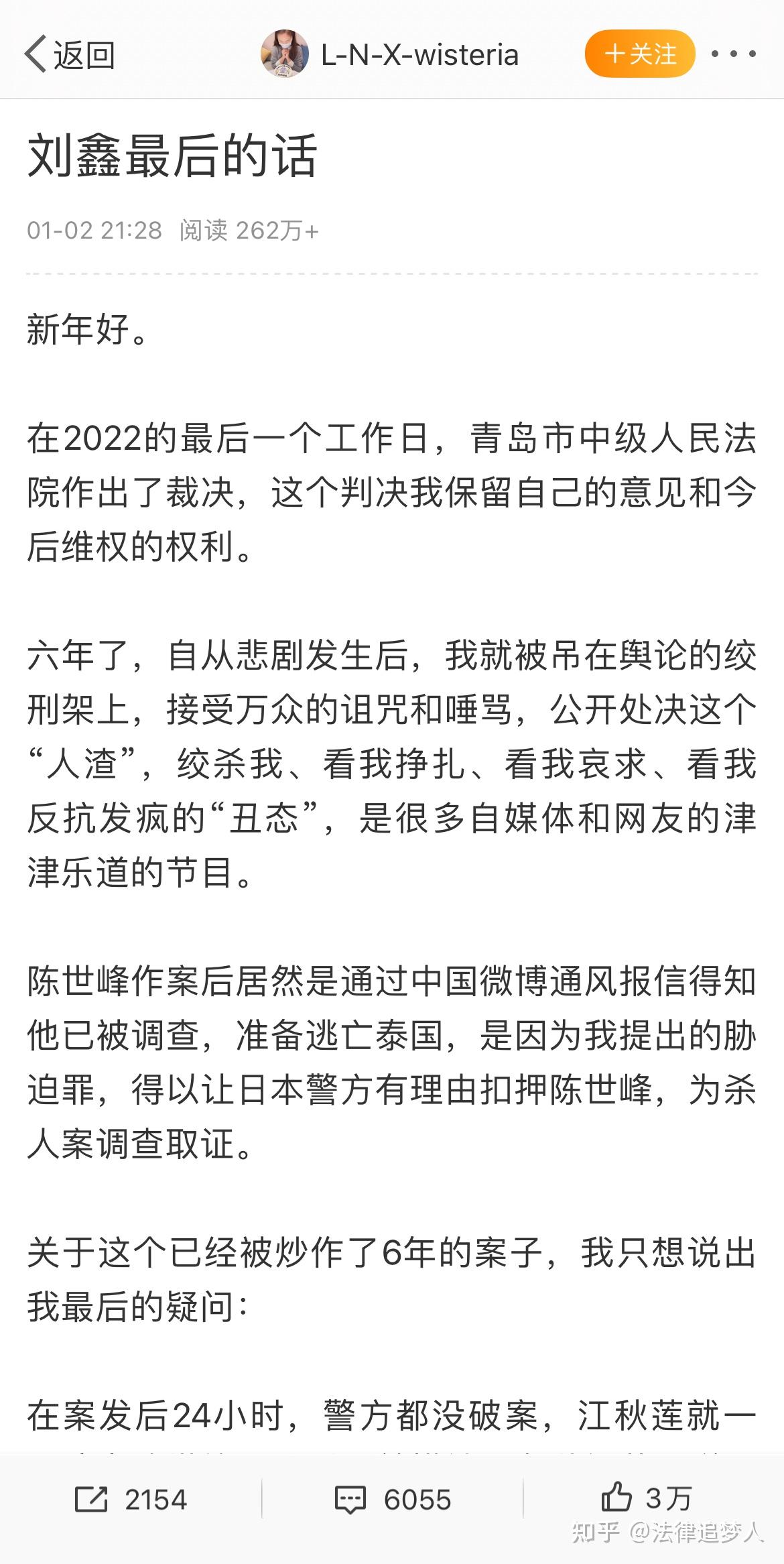 刘鑫最后的话,一个微博262万+的阅读量,更触目惊心的是,带着3万的点赞。